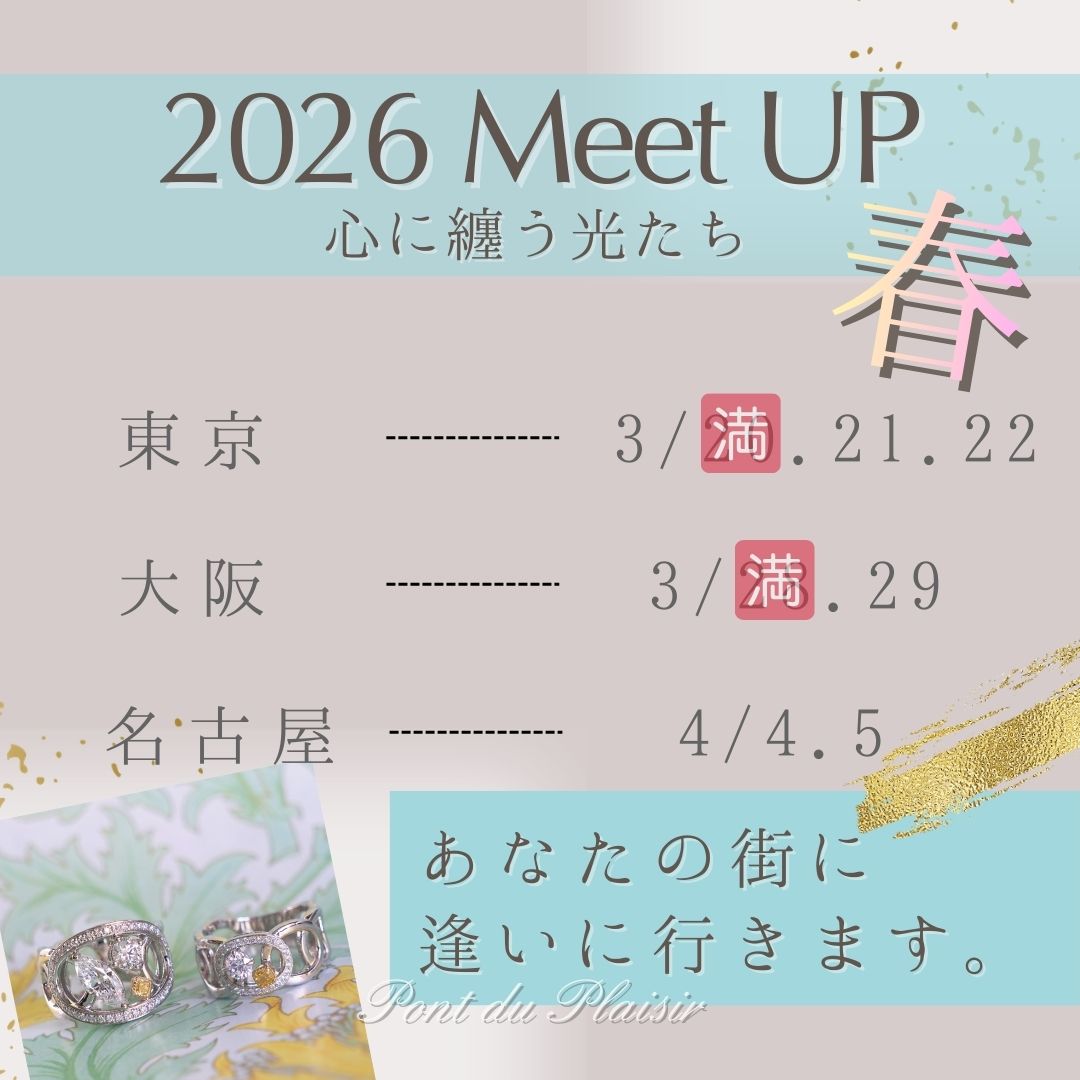 ポンデュプレジールのジュエリーでご検討のお品があります方、是非MeetUPにもご来場くださいませ。